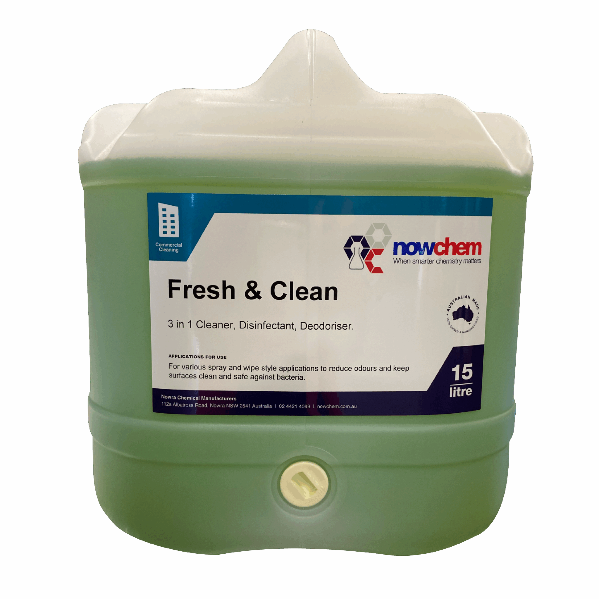Fresh and Clean is a 3 in 1 cleaner, disinfectant and deodoriser. It can be used for various spray and wipe applications, to reduce