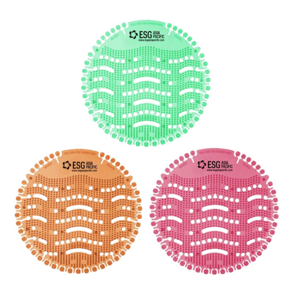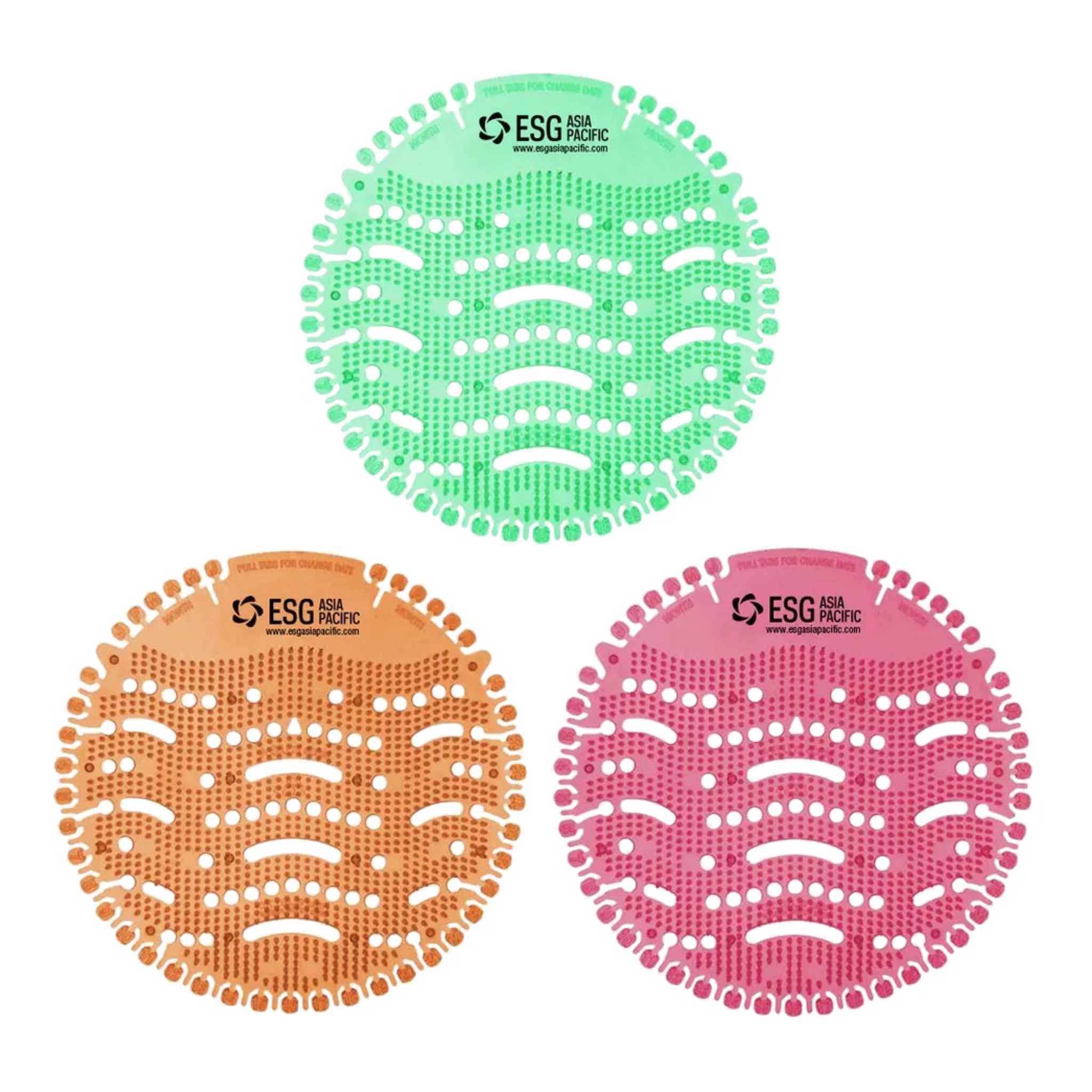 Flat urinal screen contains 15 times more fragrance than traditional urinal screens. The flexible design enables an easy fit into any urinal, and it is also suitable for waterless urinals.