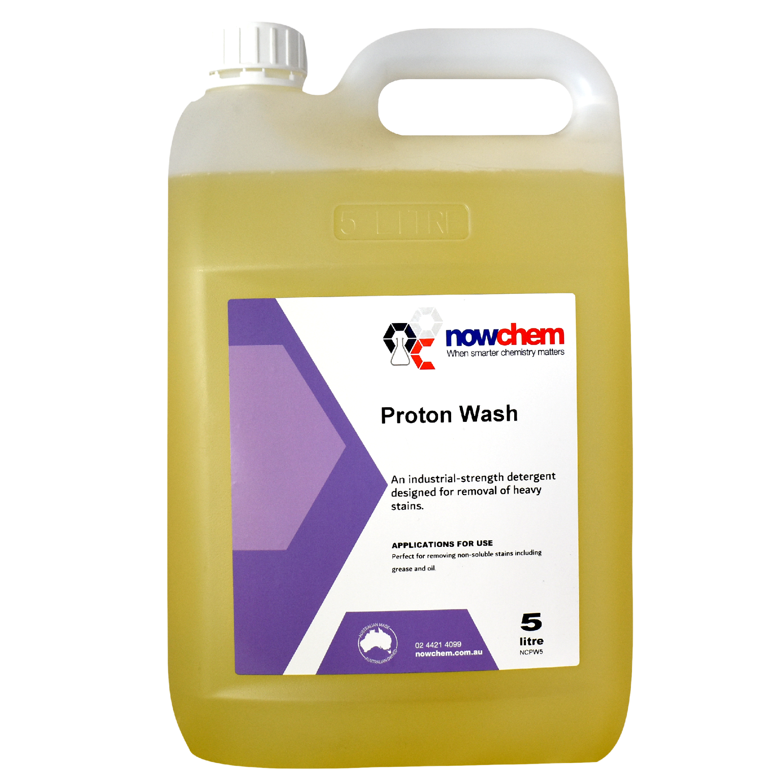 Proton Wash is a specially formulated industrial strength detergent designed for the removal of non water soluble stains such as heavy grease and oil. Suitable for use in machines and for soaking, Proton Wash will seek out grease and other stains not normally suitable in conventional detergents.